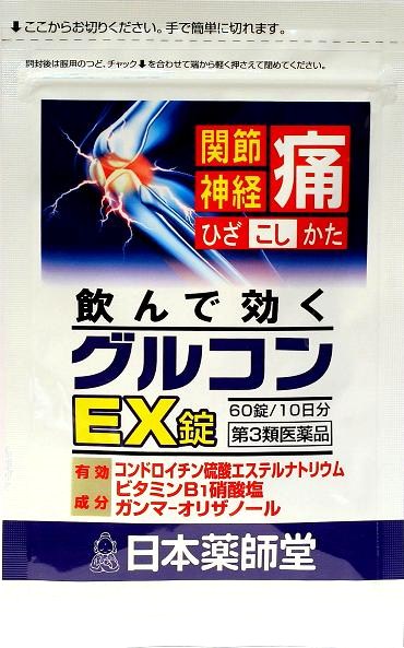 テレビCMでもおなじみの日本薬師堂の「グルコンEX錠」は、関節痛や